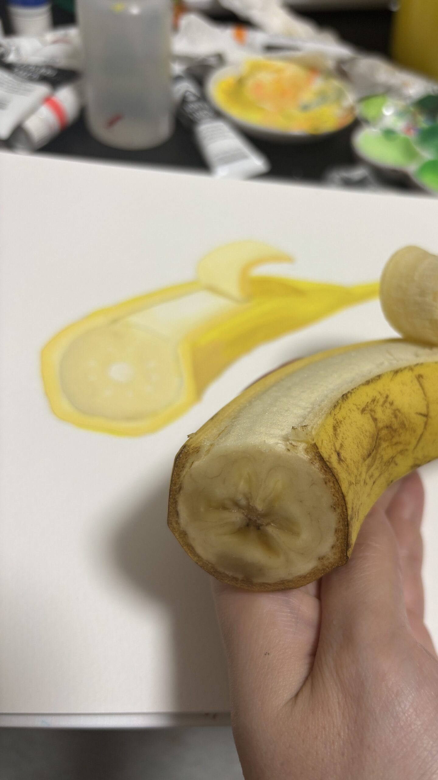 半分なのはね、さっきちょうどバナナヨーグルト食べて半分切ったから、あるのよね。残りが。