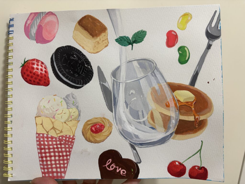 色塗り楽しかったけど、ガラスだったりゼリービーンズの透明とか牛乳の形とか、カトラリーだったりってやっぱ光のこと知らないとなかなか難しいなーと。