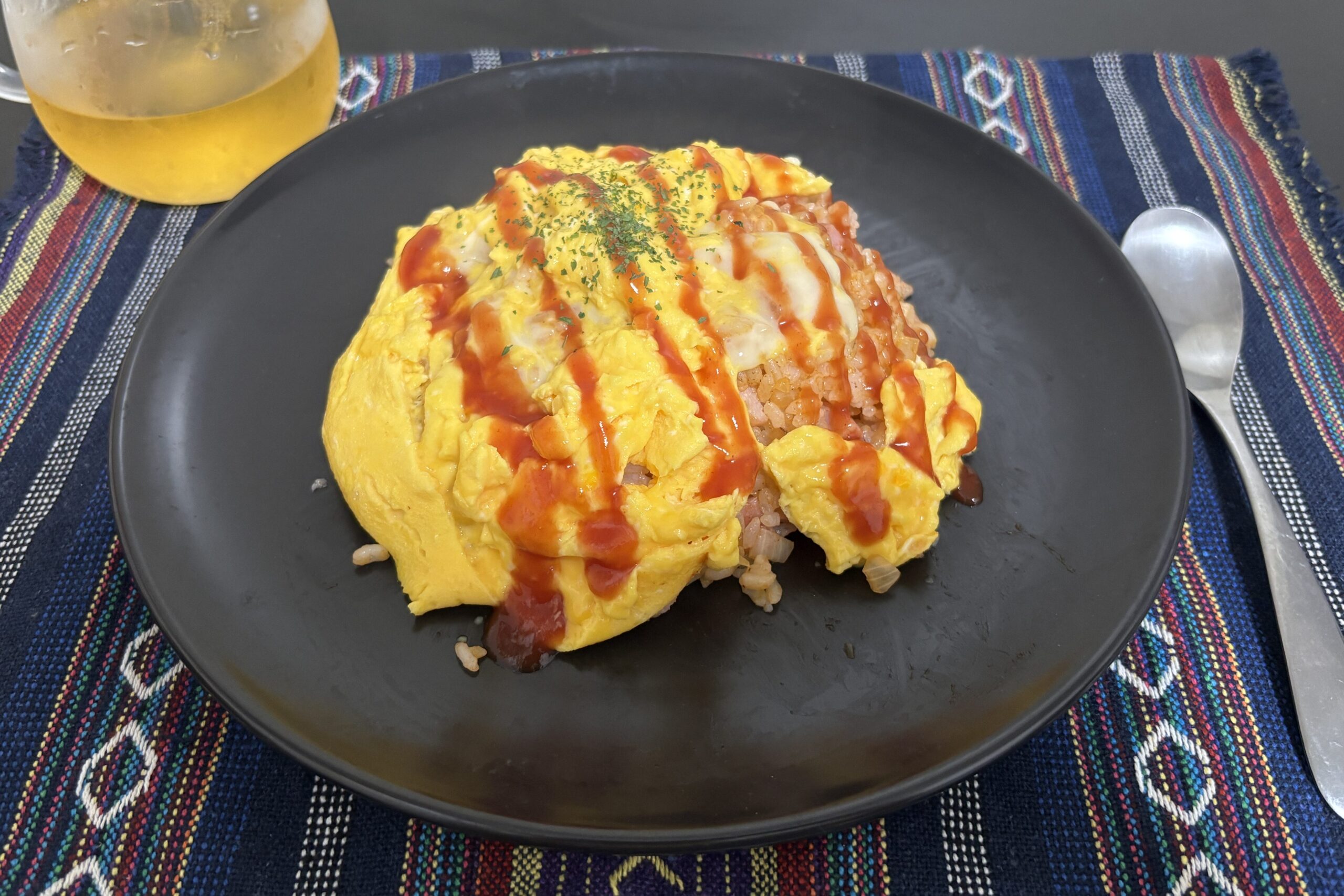 いつもなら本当に変な卵の塊を投げやりに乗せていたのだが、うまく焼けなかった形に整えた。